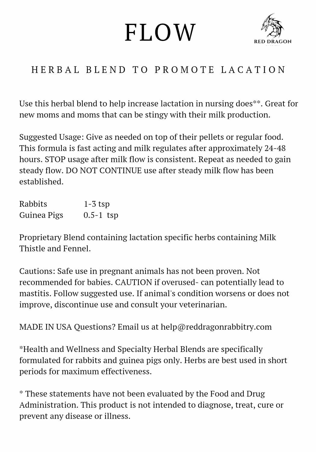 This blend is designed to increase lactation in nursing does. Great for new moms and moms that can be stingy with their milk production.
