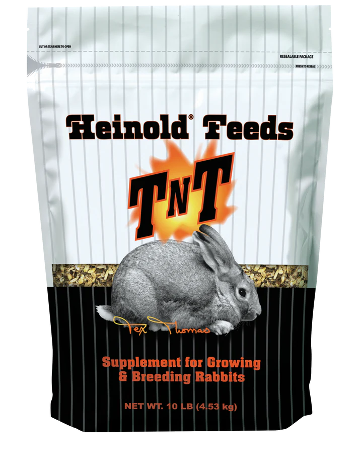 Tex and Tonya Thomas‘ symbolize TNT. Both are current/former ARBA judges‘ and Tex's Standard Chinchilla rabbit is also prominently featured on the TNT product packaging.