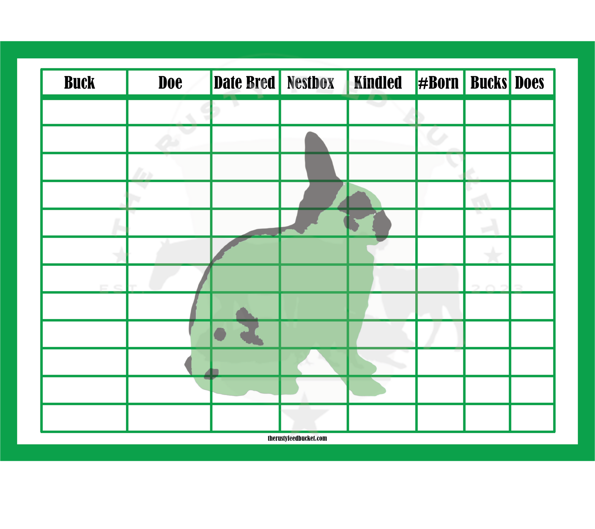 These charts are perfect to hang in the barn to keep yourself organized and for quick access to your breeding schedule. Available in a variety of breeds/body types and colors, get one that fits your rabbitry!